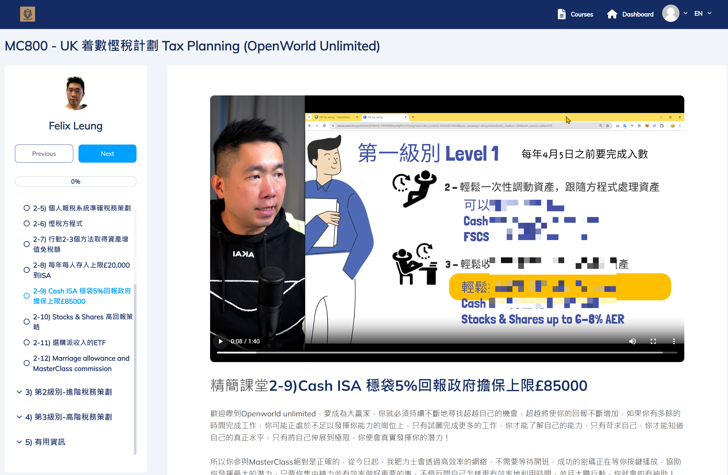 課程2: MC800 英國着數慳稅計劃Tax Planning方程式 MasterClass (登入後可即時觀看影片)